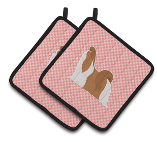 Dog Checkerboard Design Pair of Pot Holders (Dog Breed: Basset Hound)
