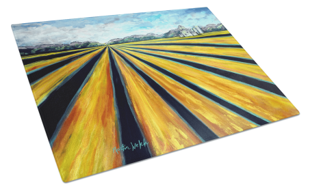 Kitchen Scene Dog Print Glass Cutting Board Large (Dog Breed: South Russian Sheepdog)