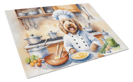 Kitchen Scene Dog Print Glass Cutting Board Large (Dog Breed: Chocolate Labrador)
