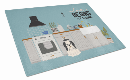 Kitchen Scene Dog Print Glass Cutting Board Large (Dog Breed: Black White Shih Tzu)