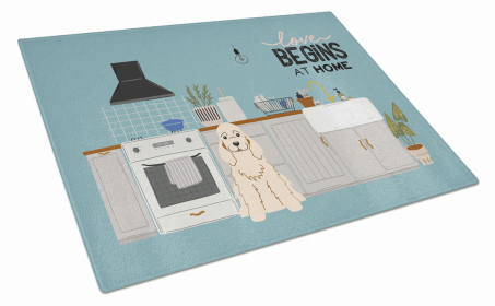 Kitchen Scene Dog Print Glass Cutting Board Large (Dog Breed: Great Pyrenese)