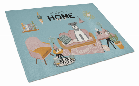 Sweet Home Dog Print Glass Cutting Board Large (Dog Breed: White Miniature Schnauzer)