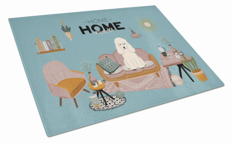 Sweet Home Dog Print Glass Cutting Board Large (Dog Breed: White Poodle)