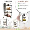 Maximize your kitchen efficiency with the Foldable Rolling Kitchen Cart with Storage Shelves. Designed for versatility, it offers ample space for organizing cookware, utensils, or small appliances, while the smooth-rolling wheels make it easy to move around your kitchen. Its foldable design allows convenient storage when not in use.
