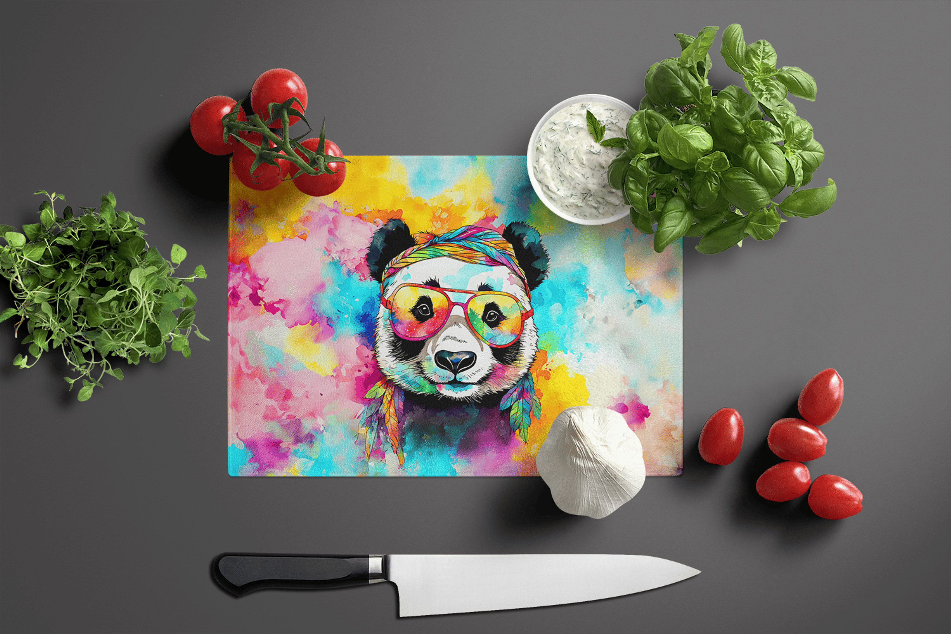 Bring peaceful charm to your kitchen with this Hippie Animal Panda Glass Cutting Board, featuring a laid-back panda dressed in colorful boho fashion. Made from durable tempered glass, this board provides a hygienic, non-porous surface that resists stains, odors, and scratches—perfect for slicing fruits, vegetables, cheeses, and more. Its whimsical design adds a fun yet functional flair to any kitchen and also makes a great gift for panda lovers and boho decor enthusiasts.