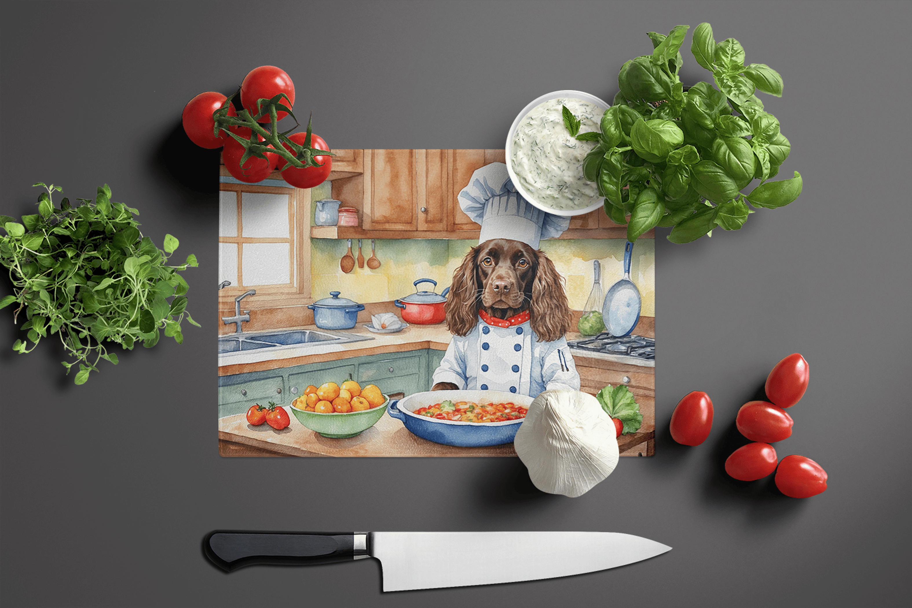 Bring playful charm to your kitchen with the Boykin Spaniel The Chef Glass Cutting Board, featuring a cheerful Boykin Spaniel dressed as a chef in vibrant colors. Crafted from durable tempered glass, this cutting board provides a non-porous, stain- and odor-resistant surface perfect for chopping fruits, vegetables, meats, and more. Its unique and whimsical design adds warmth and personality to your cooking space, serving as both a practical tool and a decorative accent. Ideal for Boykin Spaniel lovers, dog enthusiasts, and anyone who enjoys fun kitchen accessories.