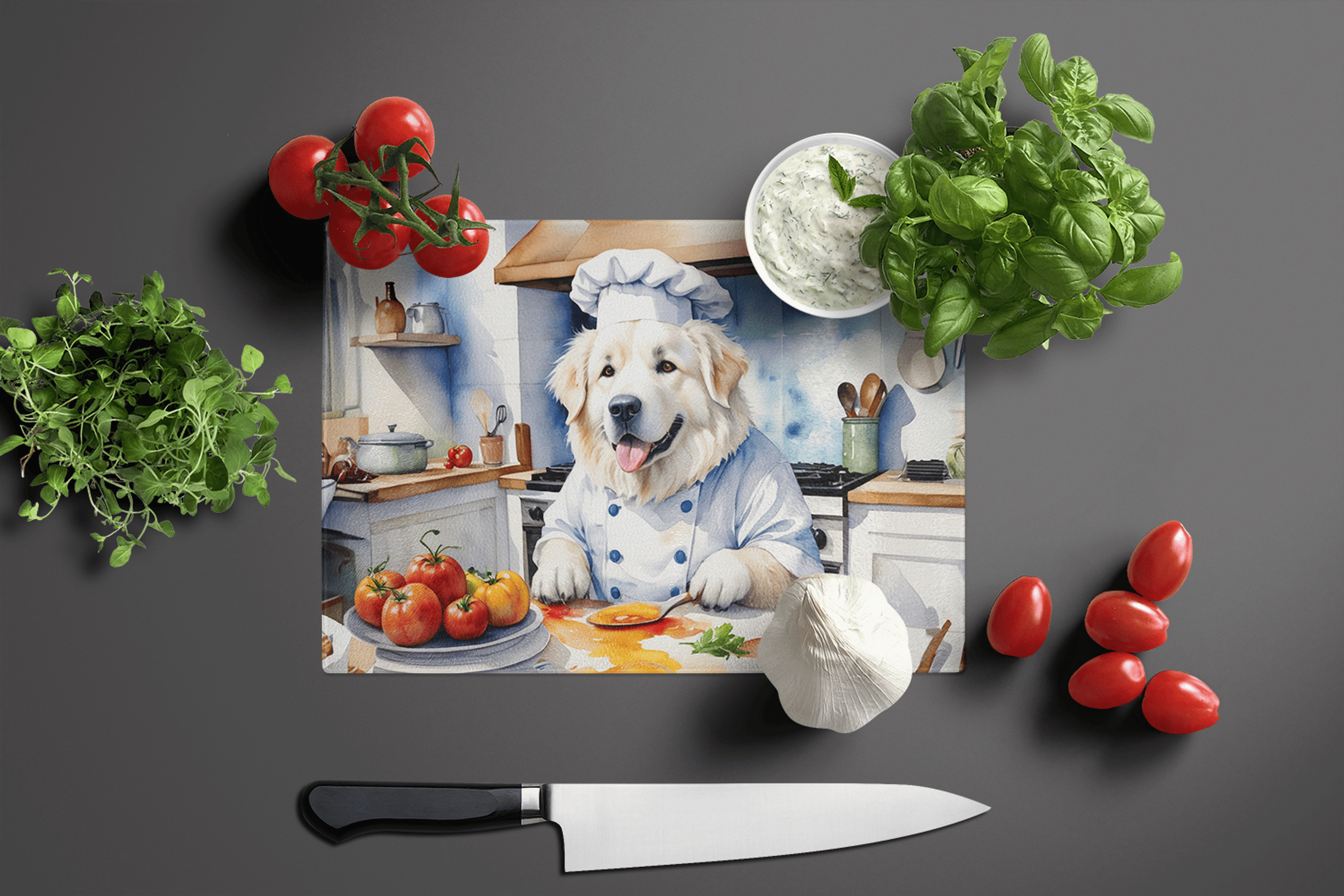 Elevate your kitchen style with the Great Pyrenees The Chef Glass Cutting Board, showcasing a gentle and majestic Great Pyrenees dressed as a chef in charming, artistic detail. Crafted from durable tempered glass, this board provides a non-porous, stain- and odor-resistant surface ideal for slicing meats, chopping vegetables, or serving snacks. Both functional and decorative, it’s perfect for Great Pyrenees lovers and anyone who appreciates playful yet practical kitchen décor.