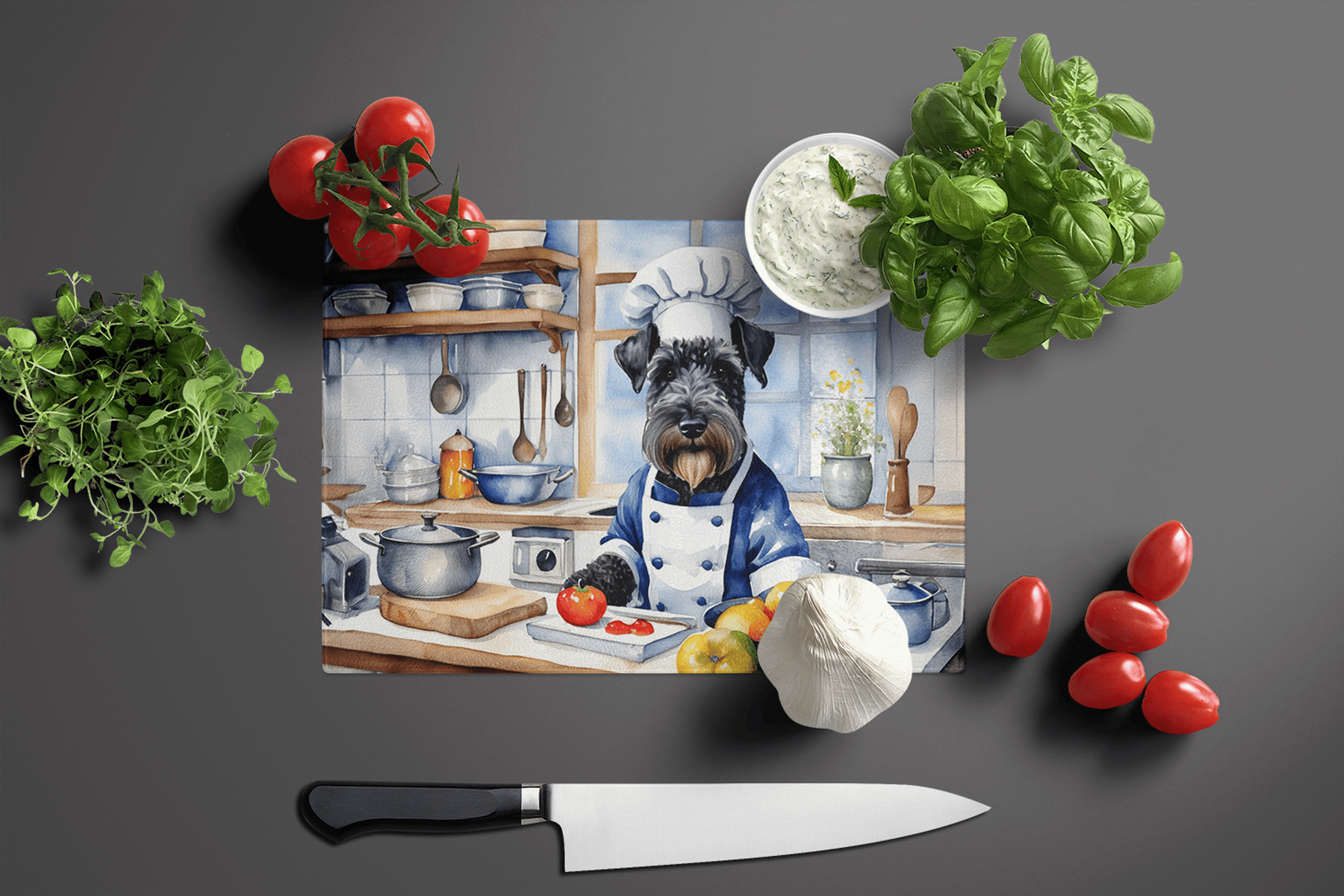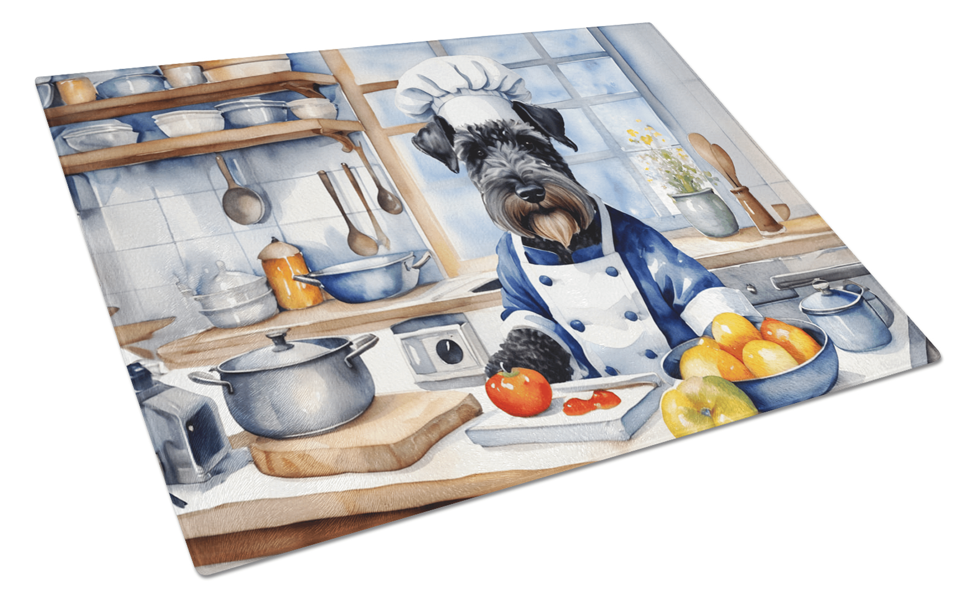 Spice up your kitchen with the Kerry Blue Terrier The Chef Glass Cutting Board, showcasing a stylish Kerry Blue Terrier dressed as a chef in colorful, whimsical detail. Crafted from durable tempered glass, this board offers a non-porous, stain- and odor-resistant surface perfect for slicing, dicing, or serving your favorite dishes. Both functional and decorative, it’s a must-have for dog lovers who enjoy adding personality to their cooking space.