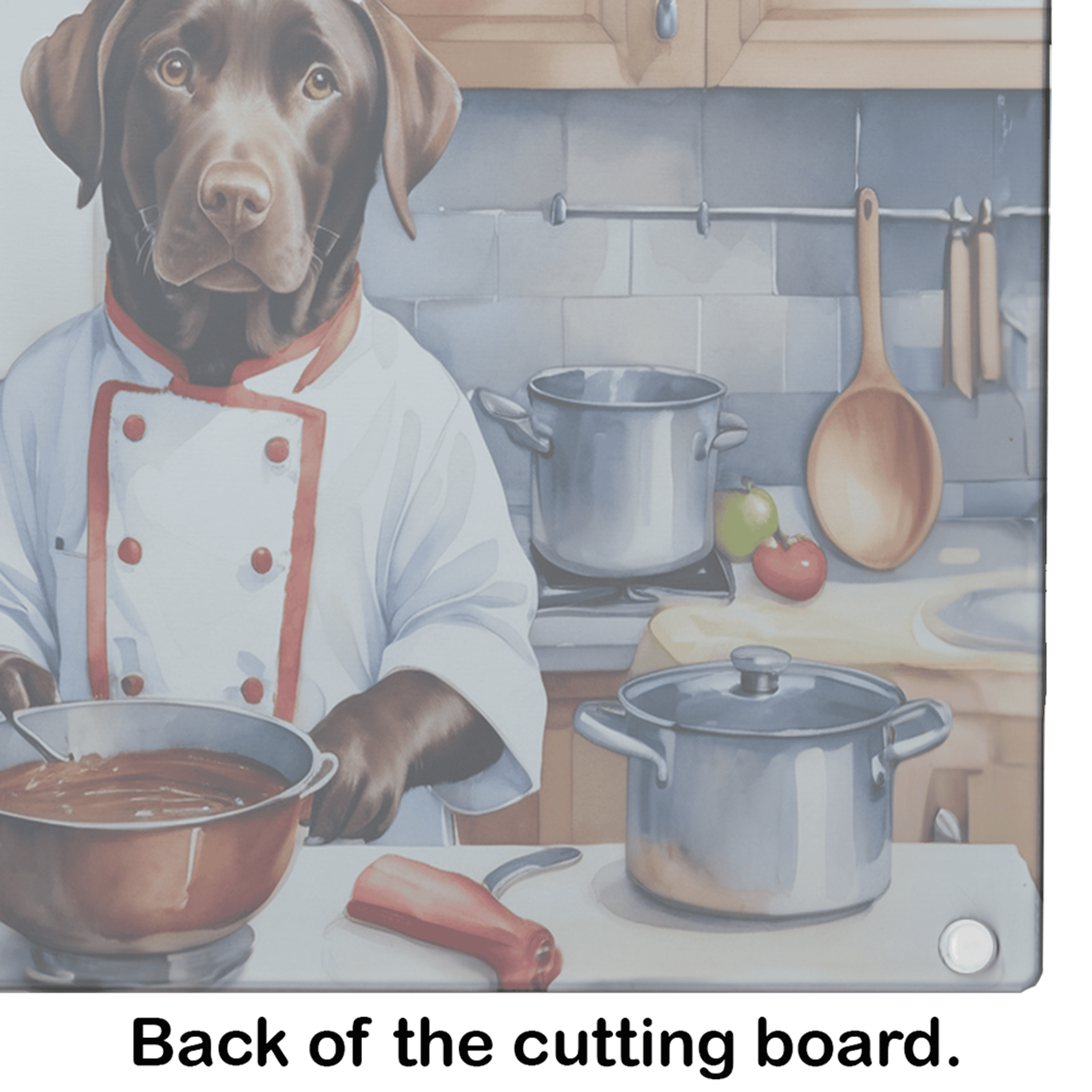 Bring warmth and charm to your kitchen with the Chocolate Labrador Retriever The Chef Glass Cutting Board, featuring a lovable Chocolate Lab dressed as a chef in fun, detailed artwork. Made from durable tempered glass, this cutting board provides a non-porous, stain- and odor-resistant surface ideal for chopping vegetables, slicing meats, or serving appetizers. Both functional and decorative, it’s a perfect gift for dog lovers and a delightful addition to any pet-themed kitchen.