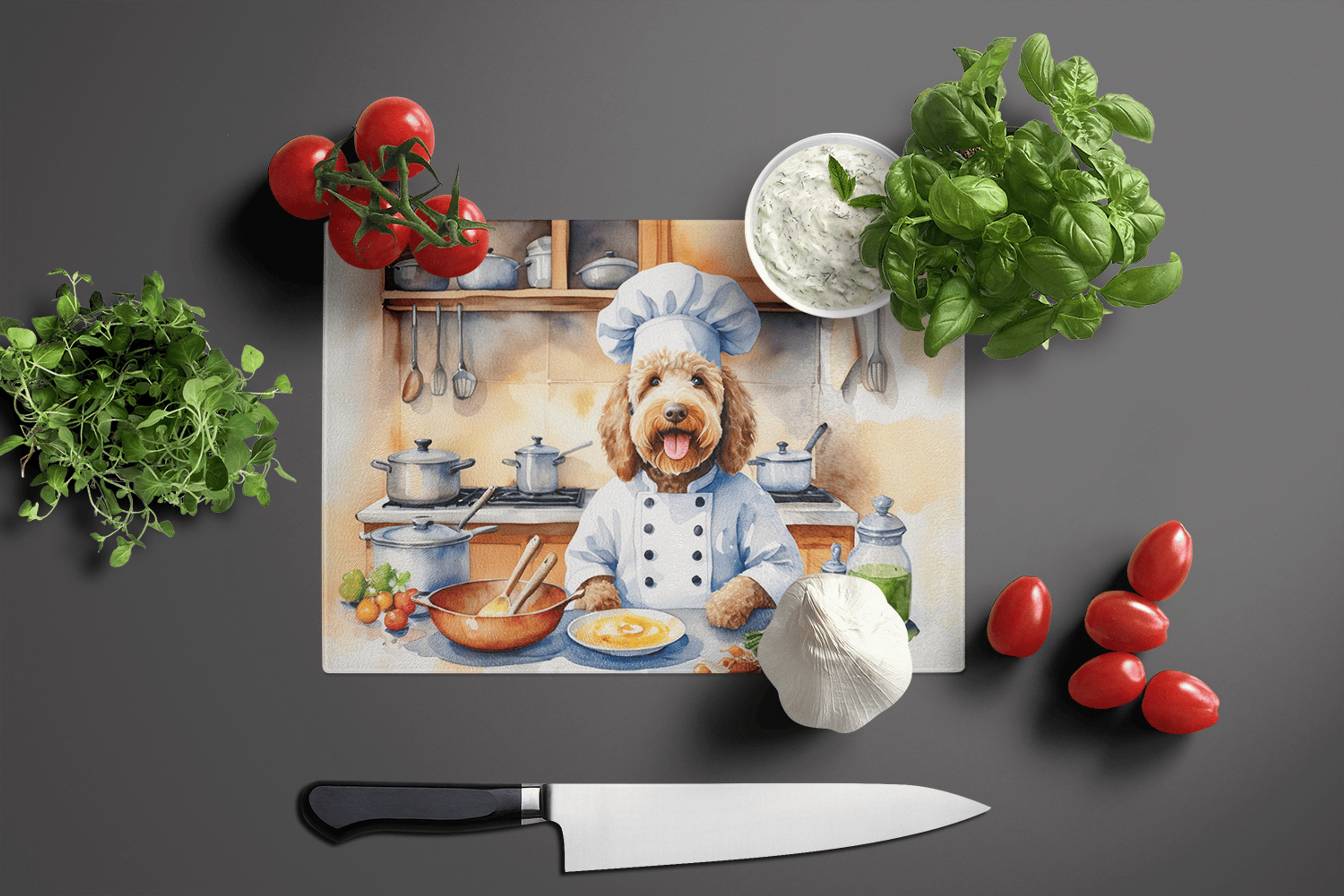 Add playful charm to your kitchen with the Labradoodle The Chef Glass Cutting Board, featuring an adorable Labradoodle dressed as a chef in vibrant, whimsical artwork. Made from durable tempered glass, this cutting board offers a non-porous, stain- and odor-resistant surface that’s perfect for slicing, dicing, and serving with flair. It’s a delightful blend of function and personality, ideal for dog lovers and fans of fun kitchen décor.