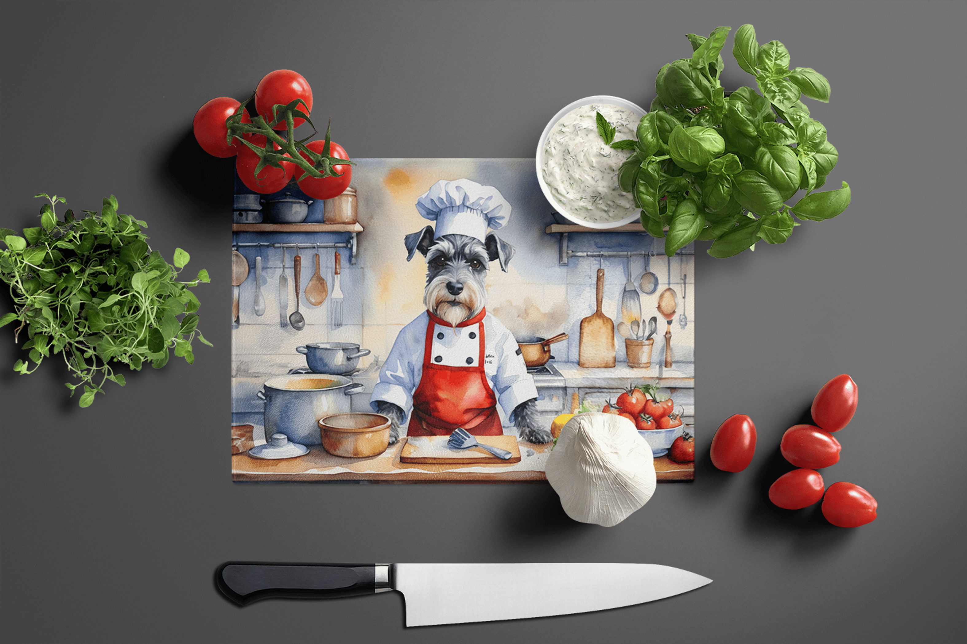 Spice up your kitchen with the Schnauzer The Chef Glass Cutting Board, featuring a charming Schnauzer dressed as a chef in lively, eye-catching artwork. Crafted from durable tempered glass, this cutting board provides a non-porous, odor- and stain-resistant surface that’s ideal for everyday food prep or serving with flair. Both functional and decorative, it’s a delightful gift for Schnauzer lovers and fans of unique kitchen accents.