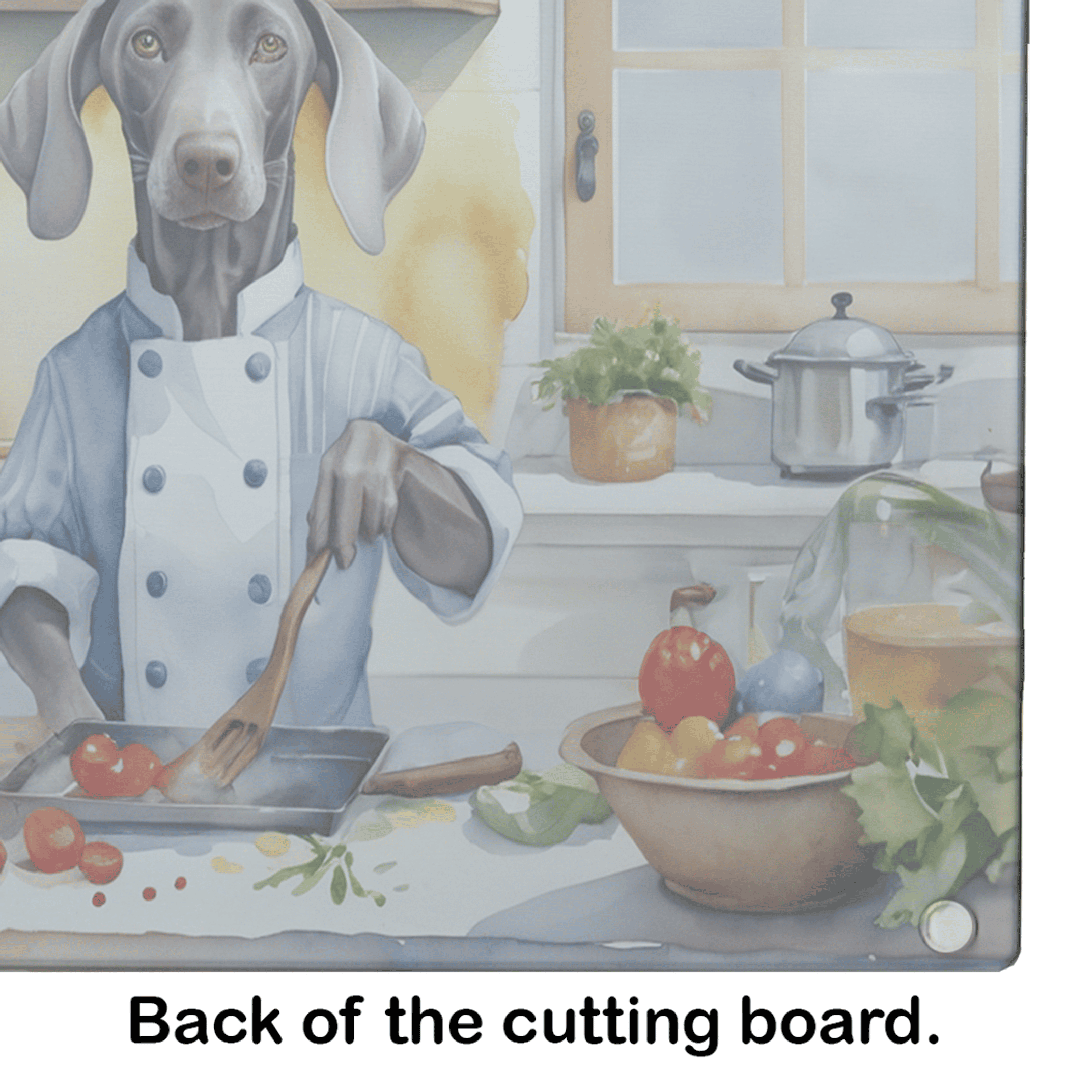 Glass Cutting Board featuring breed specific Weimaraner artwork. Introduce your kitchen to the vibrant, large Decorative Glass Cutting Board from Caroline's Treasures. Crafted from resilient tempered glass, this board is not only a utilitarian necessity but also a colorful art piece.