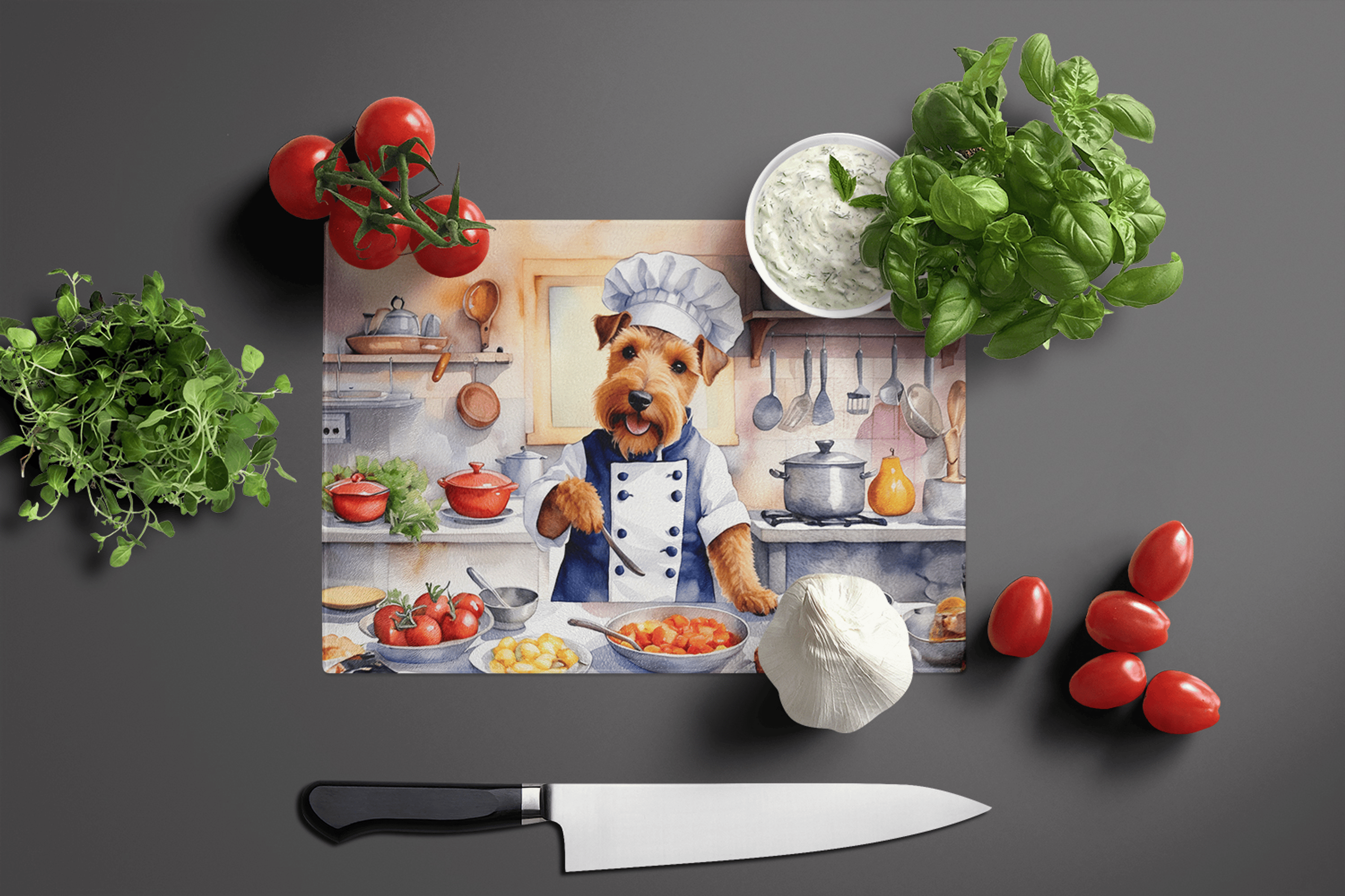 Add a playful and practical touch to your kitchen with the Welsh Terrier The Chef Glass Cutting Board, featuring a delightful Welsh Terrier dressed as a chef—perfect for dog lovers who enjoy cooking in style. Crafted from durable tempered glass, this cutting board is heat-resistant, scratch-resistant, and stain-proof, making it an ideal surface for slicing, dicing, or serving snacks. Non-slip rubber feet keep it securely in place, while the high-quality artwork adds personality to your kitchen décor. Whether you're prepping meals or gifting a fellow dog enthusiast, this board brings both function and flair.