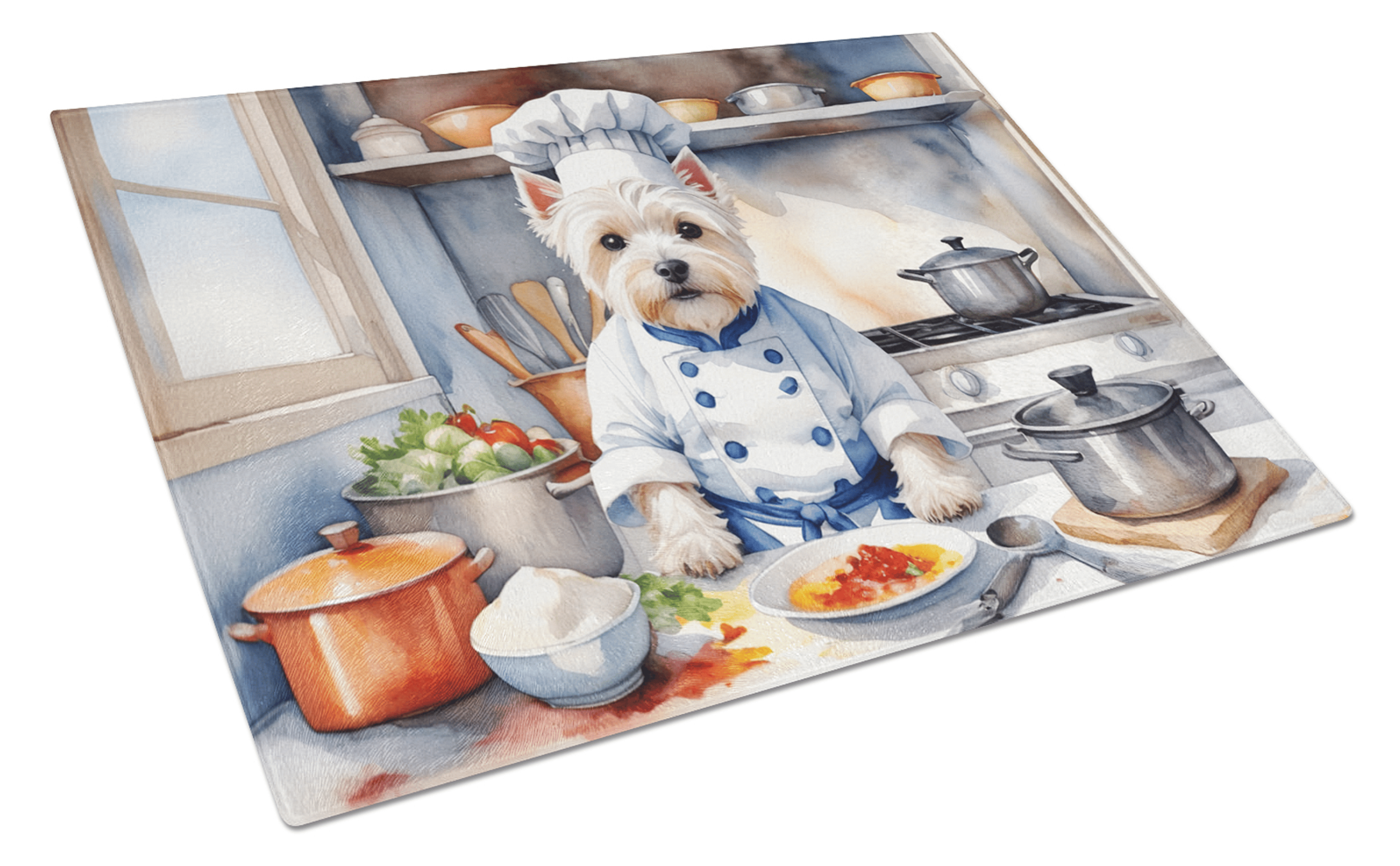 Brighten up your kitchen with the Westie The Chef Glass Cutting Board, featuring a lovable West Highland White Terrier dressed as a chef—perfect for dog lovers who enjoy blending personality with practicality. This tempered glass cutting board offers a heat-resistant, scratch-resistant, and hygienic surface, ideal for prepping meals or serving snacks in style. Its non-slip rubber feet ensure stability, while the vivid Westie artwork adds a cheerful, decorative flair to your countertop. A thoughtful and functional gift for Westie owners and cooking enthusiasts, it’s a must-have addition to any pet-friendly kitchen.