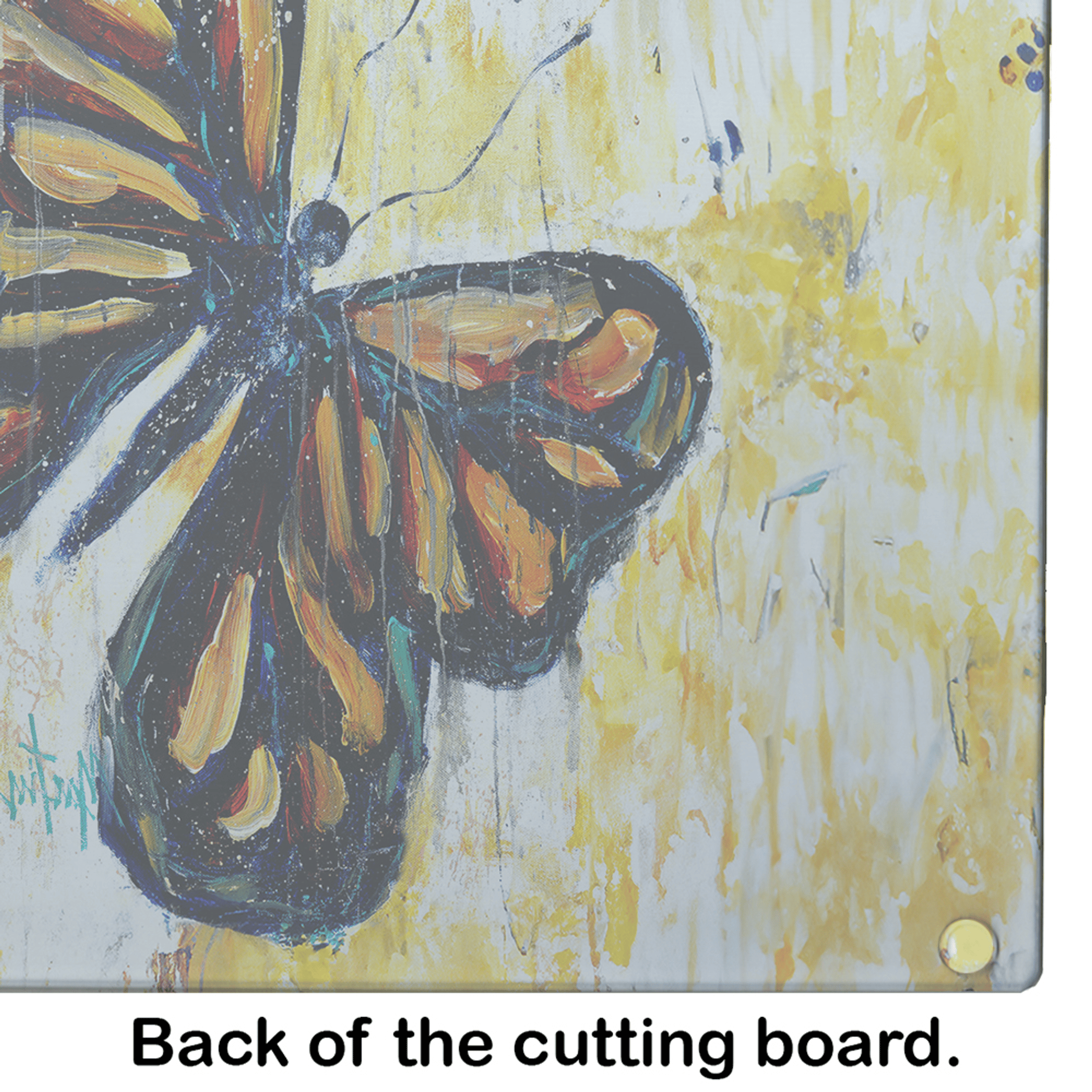Bring a sense of lightness and beauty to your kitchen with our Butterfly Breeze Glass Cutting Board, featuring a graceful design of fluttering butterflies dancing in a gentle breeze. Crafted from durable tempered glass, this board is heat-resistant, easy to clean, and equipped with non-slip rubber feet for stability during use. Perfect for light meal prep, serving treats, or adding a whimsical decorative touch, it’s a lovely way to brighten your cooking space.