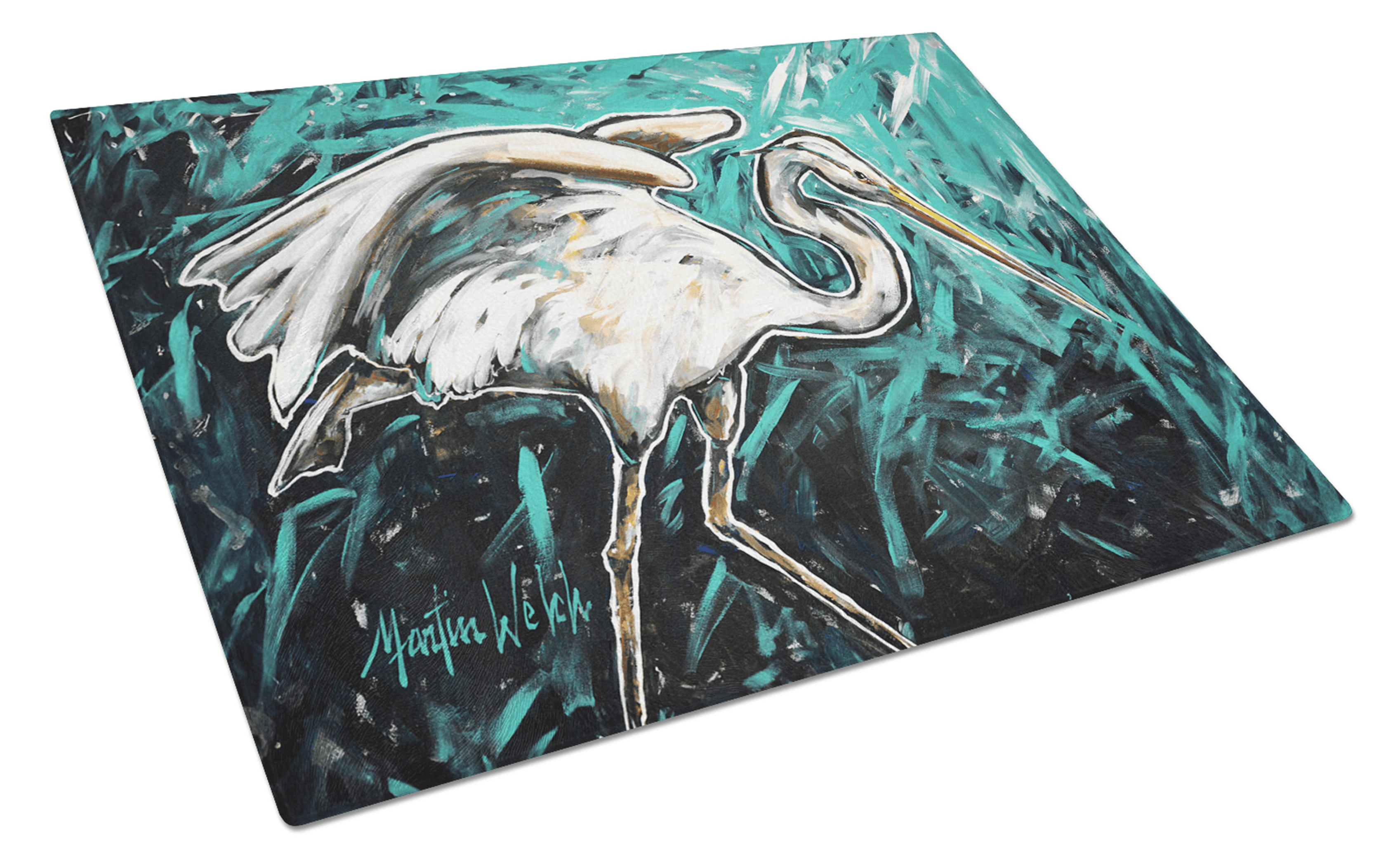 Elevate your kitchen with the graceful elegance of the Heron Stretch Glass Cutting Board, featuring a beautifully illustrated heron caught in a serene moment of motion. This nature-inspired design adds a touch of sophistication and calm, making it a perfect statement piece for coastal, rustic, or wildlife-themed kitchens. Crafted from heat-resistant tempered glass, it offers a hygienic, non-porous surface ideal for slicing, chopping, or serving. Non-slip rubber feet ensure secure use, combining beauty and practicality in one timeless piece.