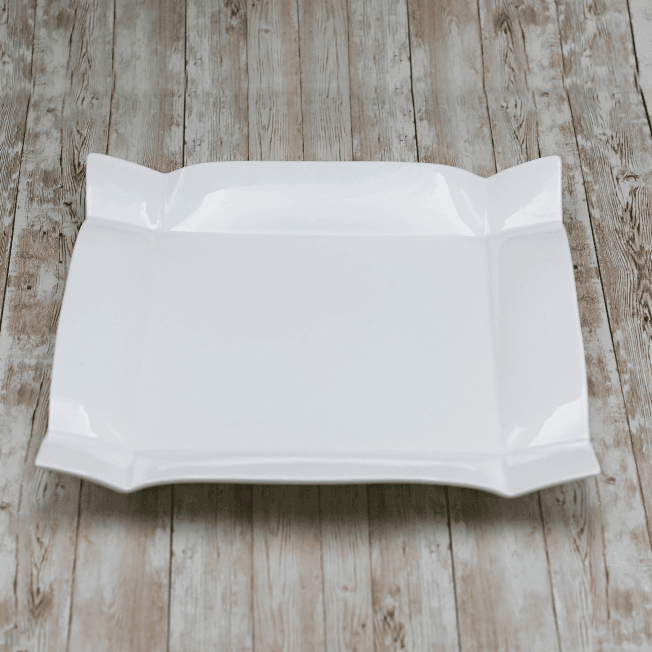 Wilmax Square Platter is an elegant, refined addition to a any dining table. Ideal for presenting most delicious ideas and a perfect canvas for an culinary artist. Can be used for serving appetizers, desserts, sandwiches or main course Versatile, affordable, and made from highest quality porcelain Suitable For family dinner, party or restaurant servingPlatter, 14" x 14" (35-1/2 cm x 35-1/2 cm), square, rolled rim, microwave/dishwasher safe, ovenproof (up to 572degreeF/300degreeC), fully vitrified, fine porcelain, white.