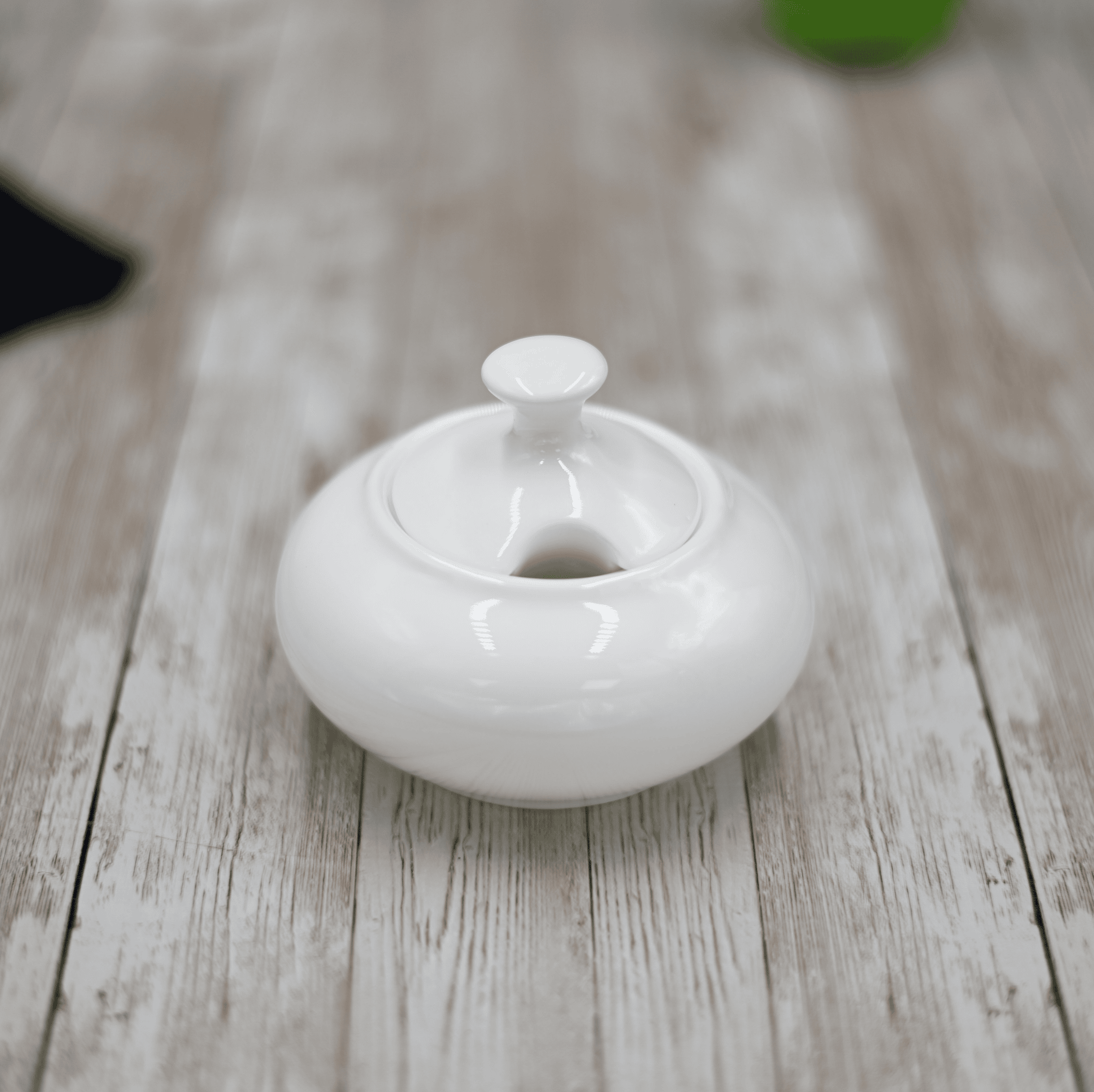 Wilmax sugar bowl have a distinctive universal plain design of Julia collection that can fit almost any interior, from classical to futuristic one. Made from sturdy porcelain and covered with solid, impeccably white glaze, it will ensure the best presentation of delicacies, which you offer to your guests. Its scratch- and chip-resistant finish will not lose its shiny look after years of intensive use. Microwave, freezer and dishwasher safe, this dinnerware offers superior flexibility and comfort in use. A great solution for festive occasions or everyday meals, for home or commercial grade application!Sugar Bowl, 8 oz. (250 ml), round, with notched lid, microwave/dishwasher safe, ovenproof (up to 572degreeF/300degreeC), fully vitrified, fine porcelain, white.
