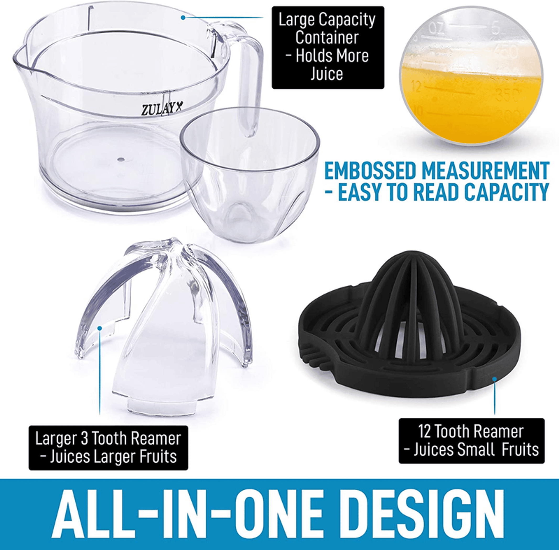 • Versatile Tool – Works as manual juicer, strainer, or measuring cup; alternative to handheld squeezers.