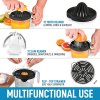 • Smart Attachments – 12-tooth reamer for small citrus, 3-claw for larger fruits; doubles as egg separator.