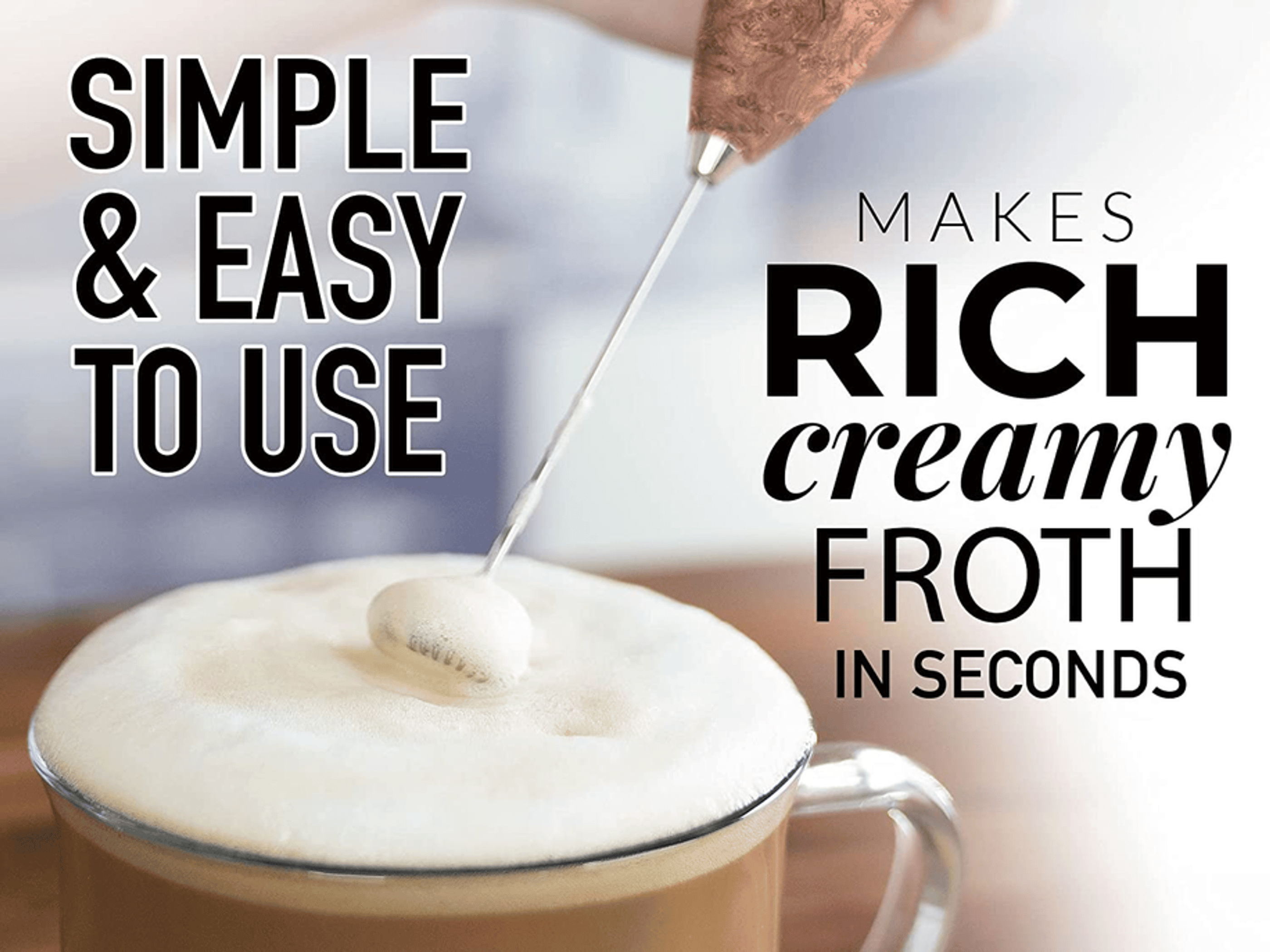 • Creates rich, creamy froth in seconds for lattes, cappuccinos, macchiatos, hot chocolate, and more.