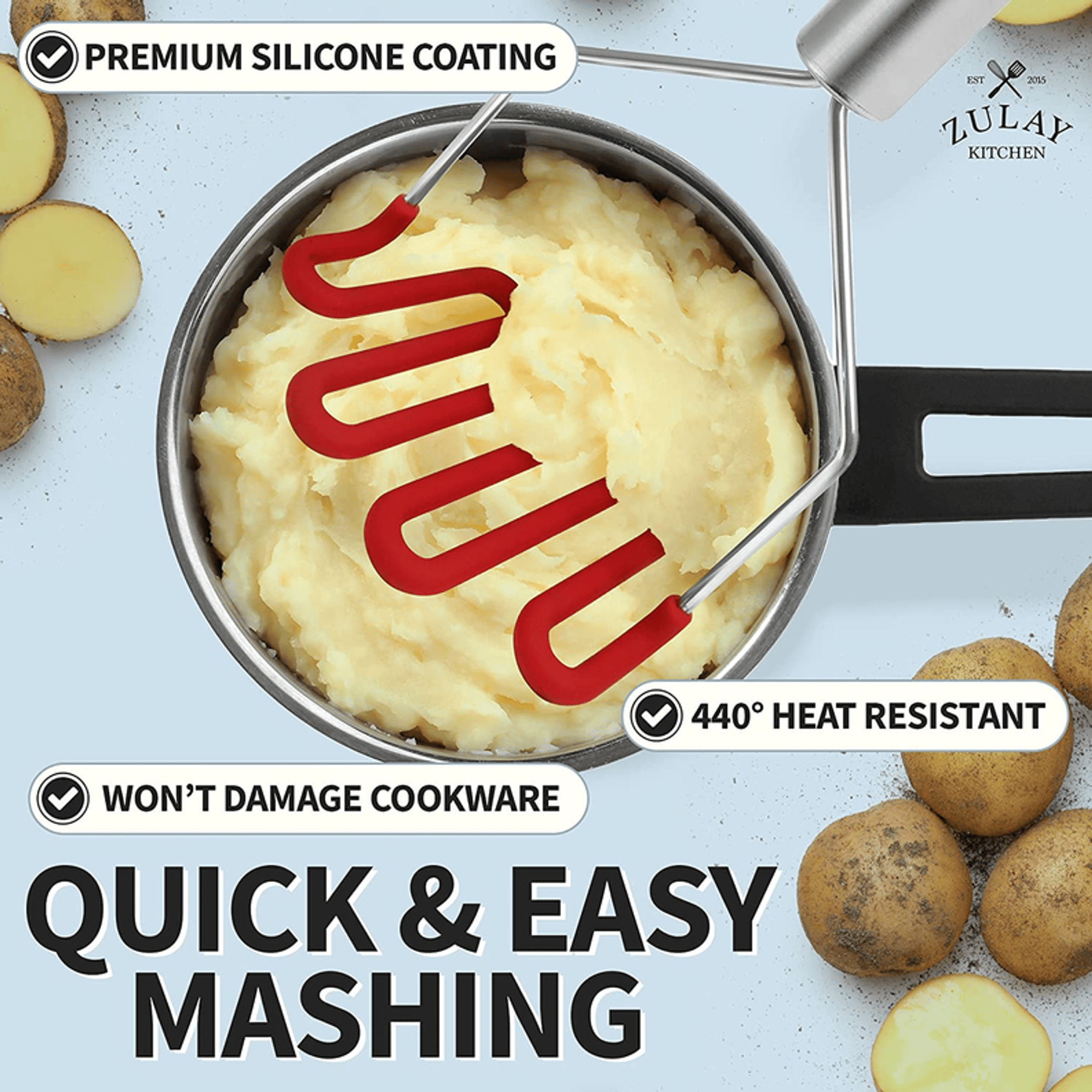 • Non-Scratch Safe: Premium stainless steel masher with thick silicone coating protects nonstick cookware while making fluffy, smooth mash.