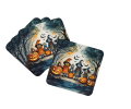 featuring a fun and festive design of classic trick-or-treaters surrounded by spooky charm. These lightweight yet durable foam coasters are perfect for protecting your surfaces during Halloween parties, movie nights, or cozy autumn evenings with themed drinks. Their soft, absorbent material helps prevent spills and scratches, while the vibrant artwork adds a playful touch to your seasonal décor.