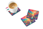 • These coasters stand out with their full-color artwork, permanently dyed onto the material for a vibrant and fade-resistant finish.