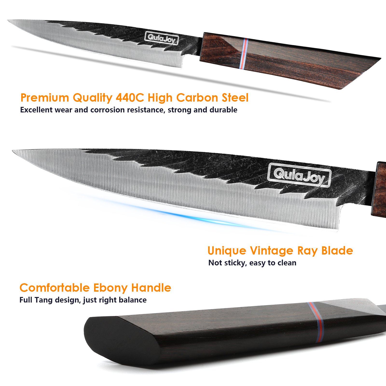 -[PRECISION CRAFTSMANSHIP]Inspired by ancient Japanese traditions and modern advanced machines, Qulajoy knives are handcrafted by highly skilled craftsmen to produce blades of unparalleled quality, beauty and sharpness.Cannot be sold on Amazon!